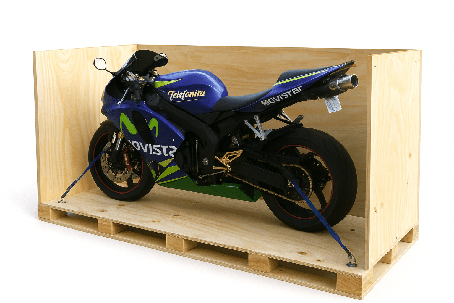Double‑wrapped, corner‑guarded and secured using rigid backing board.